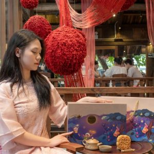 Điểm nhấn ấn tượng của Mộng Ca còn nằm ở hình in popup 3D, tạo nên hiệu ứng sống động và tinh xảo đến từng đường nét. Nhờ vậy, người nhận có thể đắm chìm trong không gian văn hóa đêm trăng rằm, cảm nhận được sự tỉ mỉ và tâm huyết trong từng chi tiết. Để tăng thêm vẻ sang trọng và thu hút, các chi tiết trên mặt nắp hộp được ép kim kết hợp bồi giấy màng metalize toàn bộ, mang lại hiệu ứng thị giác ấn tượng và vẻ ngoài lấp lánh cho bao bì.