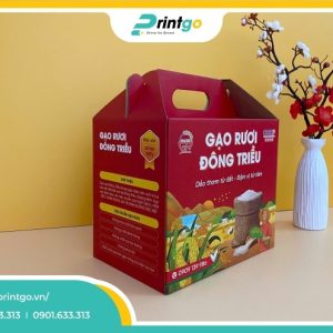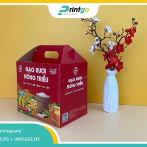 Xuất phát từ vùng đất nổi tiếng với bề dày truyền thống nông nghiệp, gạo rươi Đông Triều không chỉ là nguồn dinh dưỡng quý giá mà còn là biểu tượng của văn hóa địa phương. Thấu hiểu điều đó, Hợp tác xã Đặc sản Đồng rươi Đông Triều đã hợp tác cùng Printgo để tạo ra một diện mạo chuyên nghiệp, ấn tượng, khẳng định vị thế của thương hiệu trên bản đồ nông sản Việt Nam. Dự án in hộp sóng quai xách đựng gạo rươi Đông Triều PG-HG24-84 không chỉ mang tính thẩm mỹ, thân thiện với người tiêu dùng mà còn góp phần lan tỏa bản sắc độc đáo của địa phương.